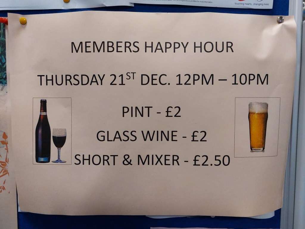 This Thursday the club will be having a “Happy Hour” at the bar. See below for details. ![]()