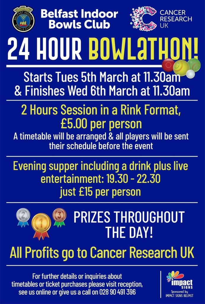 The club is very pleased to announce our 24 hour BOWLATHON in aid of our chosen charity Cancer Research UK. ![]()